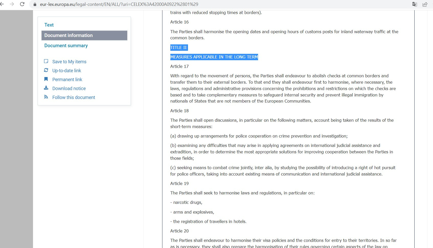 De kern van het probleem zit in het Schengenverdrag, naar het Luxemburgse plaatsje waar het verdrag op 14 juni 1985 werd gesloten. Het regelt het weghalen van de binnengrenzen, wat bepaalde verantwoordelijkheden ‘tot gevolg’ heeft. Dat staat in titel I van het verdrag, bij ‘korte termijn’. Vervolgens heeft dat verdrag een titel II, waarin expliciet ‘lange termijn’ staat. Het omgaan met de gevolgen van het weghalen van de binnengrenzen wordt dus bewust op de lange termijn geschoven. Dat vinden mensen dan ‘complotdenken’, als je dat zegt, maar het staat er wel gewoon letterlijk.