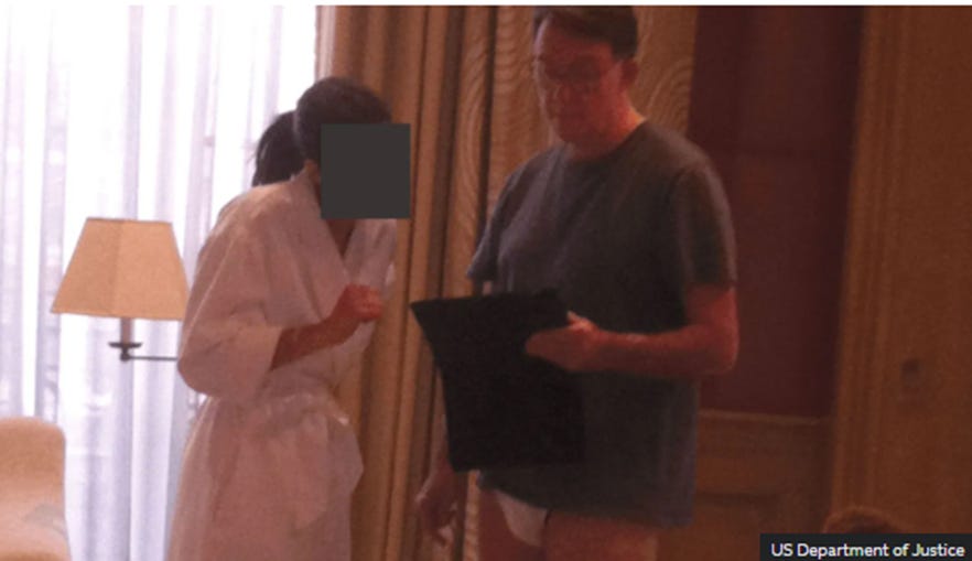 In de zogeheten Epstein-files, het bewijsmateriaal dat het Amerikaanse Ministerie van Justitie openbaar heeft gemaakt, zien we vervolgens een foto van deze Peter Mandelson in onderbroek. Dat is, zacht gezegd, niet heel erg zakelijk.