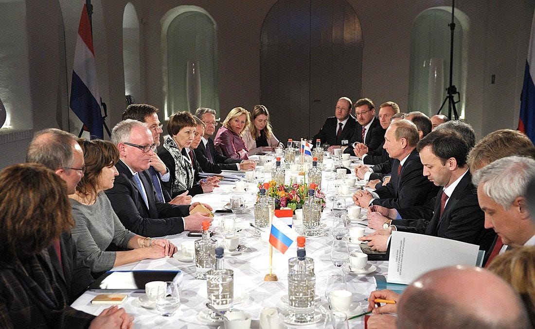Wiebes is dan verantwoordelijk voor het dossier en antwoordt weer dat artikel 67 de ‘buitenlandse belastingplichtige’ beschermt. Een maand later stelt de SP Kamervragen over de aanwezigheid van de eerder genoemde Neder-Oekraïner Akhmetov op de Zuidas. Ze zijn gericht aan Lilliane Ploumen.Ook zij was aanwezig bij de roadshow van Nederland als belastingparadijs in 2013, we zien haar hier met het bruine haar tegenover Lavrov en Poetin zitten. Ze herhaalt het kabinetsstandpunt: we gaan geen Kamervragen beantwoorden over de oligarchen, die staan boven de wet.