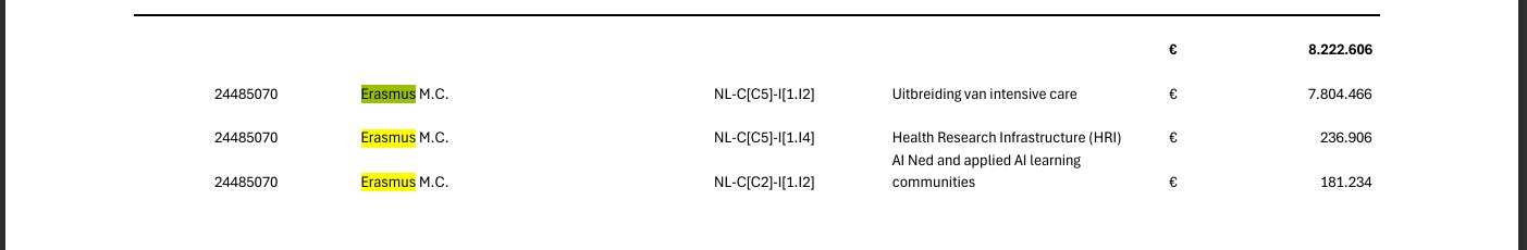 Het zal vast en zeker nodig zijn. Maar wat heeft dit met een pandemie te maken? Er gaat ook geld naar het Erasmus M.C., zodat de intensive care (te laat) kan worden versterkt. Dat doet nu eens wel logisch aan. Het bedrag: 7.804.466 euro. Nu ziet u waar het idee bij mensen vandaan komt dat er hier sprake is van enig politiek opportunisme.