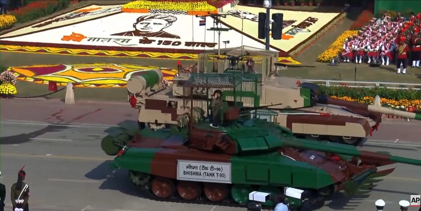 En zo kan het gebeuren dat een Europese kolonel zich ineens eenzaam voelt in een enorme Indiase militaire parade. Een ‘battle cry’ van een passerende eenheid klinkt indrukwekkend, aangenomen dat die eenheid groter is dan de bevelhebber en zijn of haar chauffeur. Helaas mocht het niet zo zijn. Het specifieke moment zien we op minuut 26. De intenties zijn ongetwijfeld goed maar zoals elk Europees initiatief is er geen ‘body’, in de vorm van burgers die erom vragen en bereid zijn bedragen te betalen. Wat je dan overhoudt is mager, heel mager. Gelukkig hebben de Indiërs er wel zin in, naast spullen en getrainde troepen, kijk maar hieronder. Een artikel over de inhoud van de deal en militaire parades in het algemeen volgt!