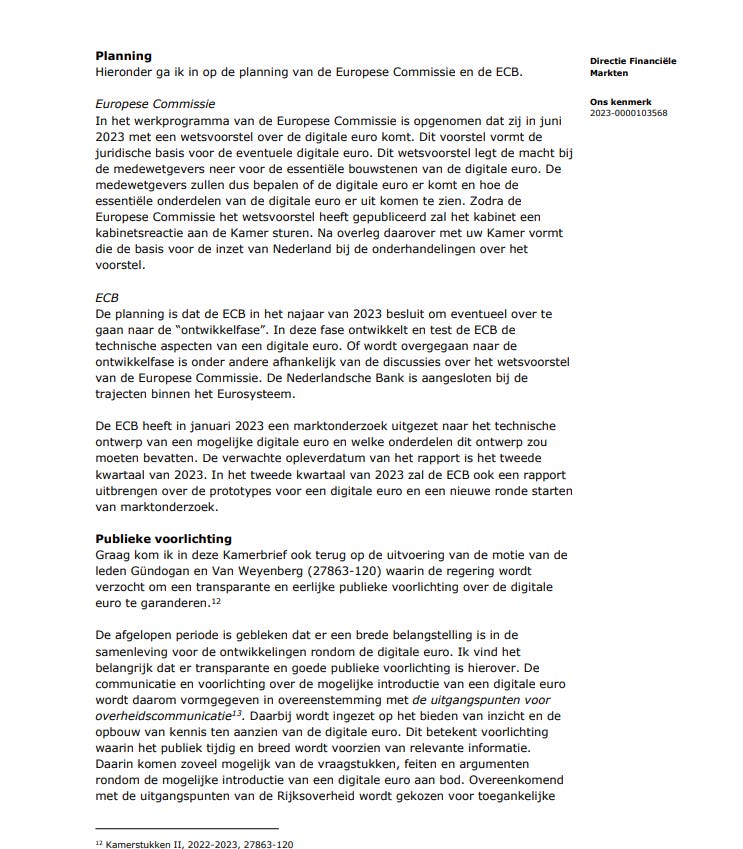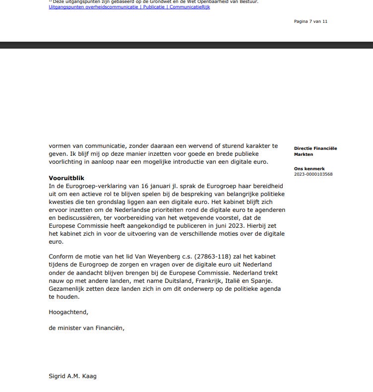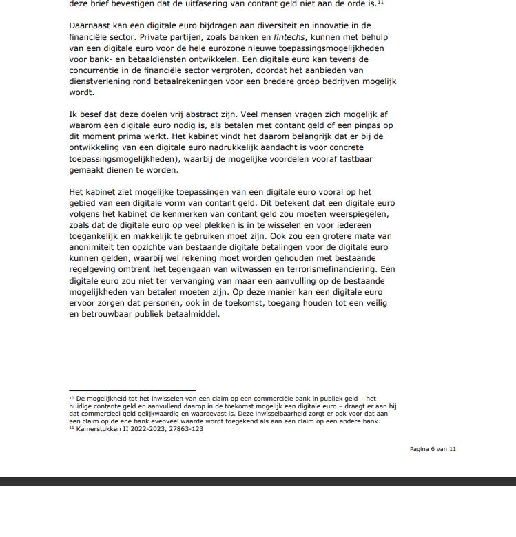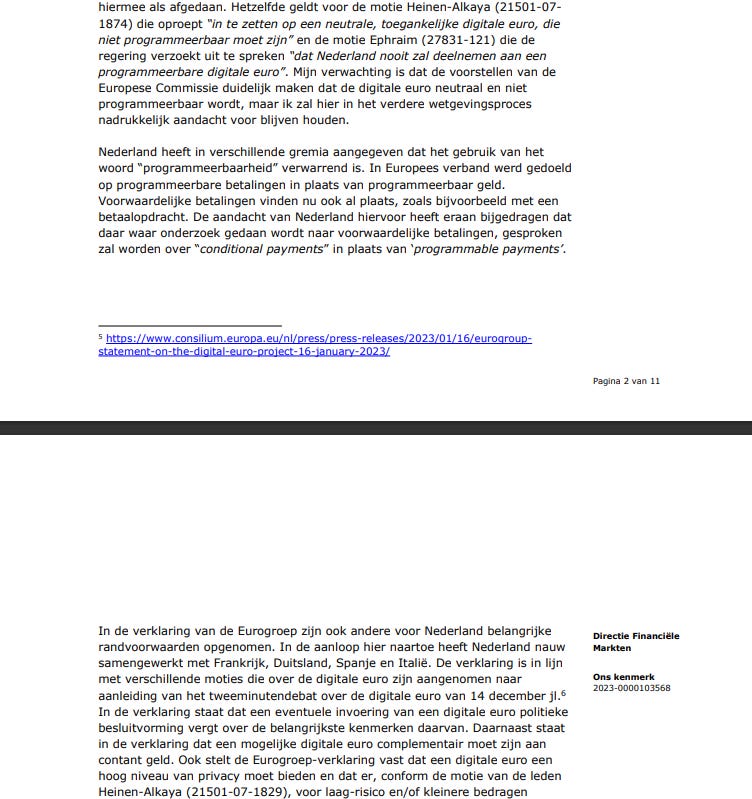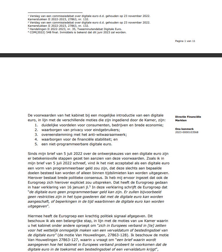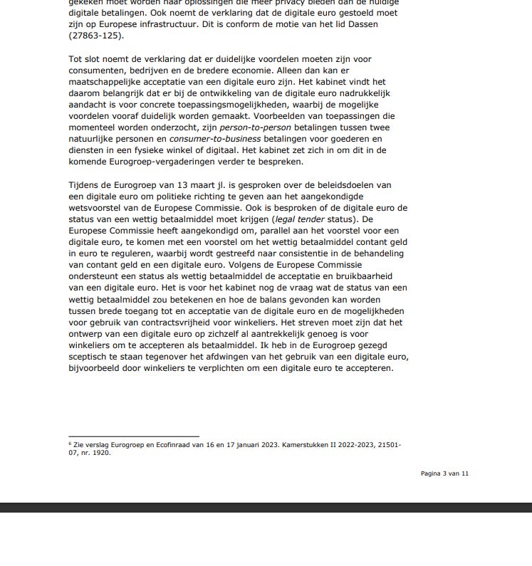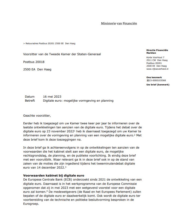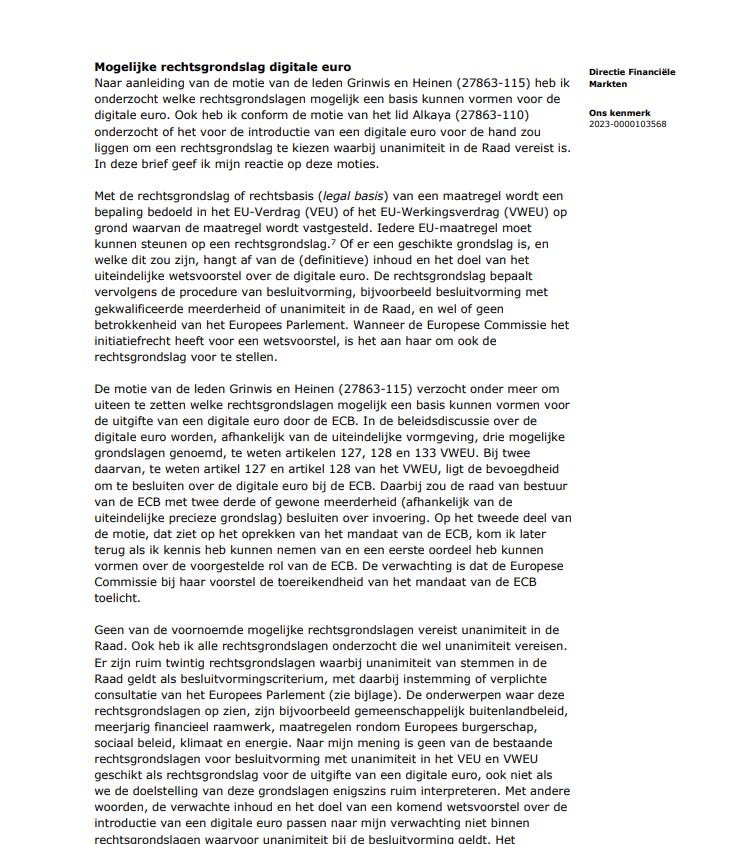Hieronder ziet u de desbetreffende aflevering van De Nieuwe Wereld. Het veto kwam ook aan bod bij Current Ratio, vorige week, eronder opgenomen. Daaronder is de hele brief van Kaag integraal geplaatst, want om de een of andere reden heeft het Minister van Financiën de uiterst informatieve brief van het web gehaald (niet te veel achter zoeken, documenten worden wel vaker verplaatst) maar er is een kopie van de verder uiterst nuttige en informatieve brief. Mijn werk ondersteunen kan via Backme.org, zonder uw steun is dit gegraaf niet mogelijk. Wie wil weten waarom er CBDC moet komen, leest Het Euro Evangelie, te koop bij Bol. Het heeft te maken met overkreditering, de centrale bank wil rente in rekening kunnen brengen als die negatief is en daarom met contant geld plaatsmaken voor digitaal geld - CBDC dus.