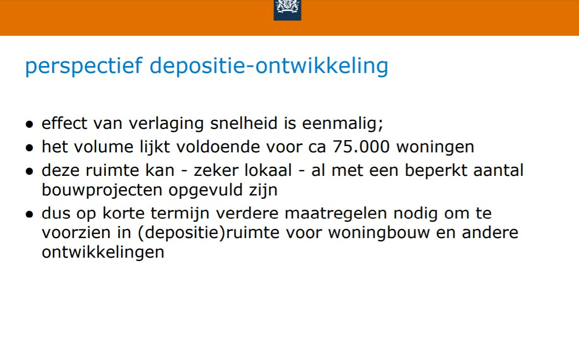 In 2019 besloot de Raad van State dat deze methode niet is toegestaan, na een lange juridische procedure. Iedereen moet minder uitstoten, je mag het een niet met het ander salderen. Sindsdien is er een stikstofcrisis. Nu mag er pas gebouwd worden als er over de hele breedte minder stikstof wordt uitgestoten. Daarom is de maximumsnelheid ook verlaagd. Uit de documentatie van het RIVM blijkt echter dat de maatregelen van tot en met november 2019 ruimte boden voor slechts 75 duizend woningen, geen tiende van een miljoen.