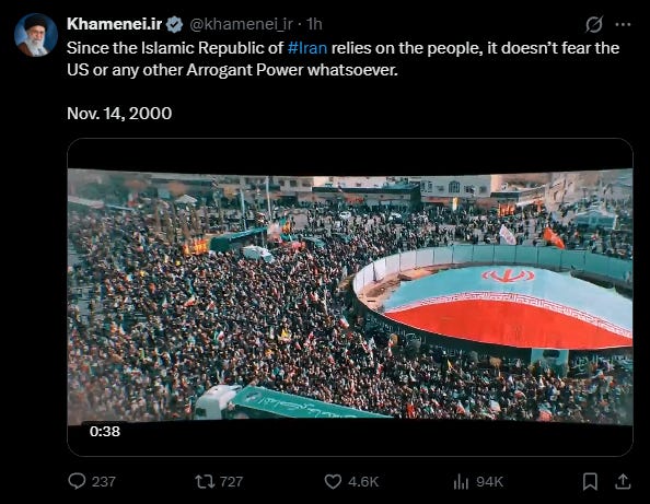 Er lijken nu een paar dingen te gebeuren. De ‘opperste leider’ in Teheran leeft niet meer, maar dat kunnen we niet zeggen van zijn Twitter-account. Hier wordt een vergelding aangekondigd voor de Amerikaanse en Israëlische aanvallen.