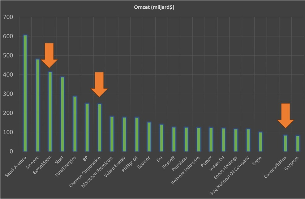 En passant noemt Trump ook dat Amerikaanse bedrijven de oliesector nieuw leven in zullen blazen. Volgens de Amerikaanse president zijn zijn bedrijven de grootste ter wereld en het best toegerust om deze klus te klaren. Een simpele zoektocht naar de grootste oliebedrijven ter wereld naar omzet leert echter dat de grootste Amerikaanse, ExxonMobil, de nummer drie van de wereld is. Bedrijven uit Saudi-Arabië en China bezetten plek een en twee. Chevron is nummer 7 en ConocoPhilips nummer 27.