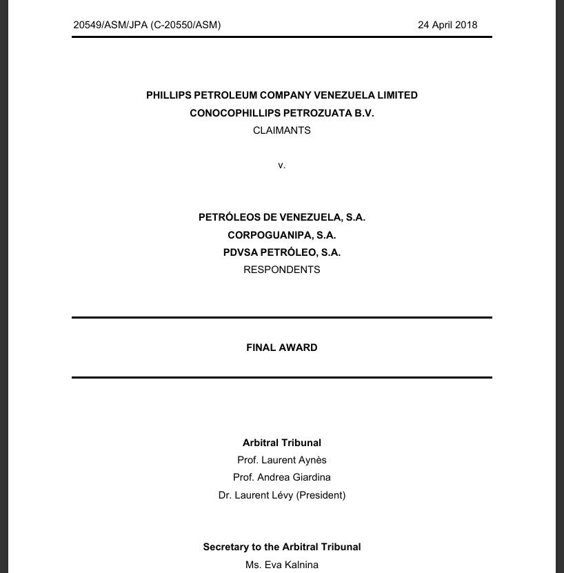 De andere twee bedrijven probeerden via juridische procedures een schadevergoeding te krijgen. Dat kan, via het geschillentribunaal van de Wereldbank. Ze stelden dat ze op het moment van investeren niet konden weten dat ze later met onteigening geconfronteerd zouden worden. Uiteindelijk stelde het tribunaal Venezuela in het ongelijk, er moest een schadevergoeding van opgeteld zo’n tien miljard dollar betaald worden.